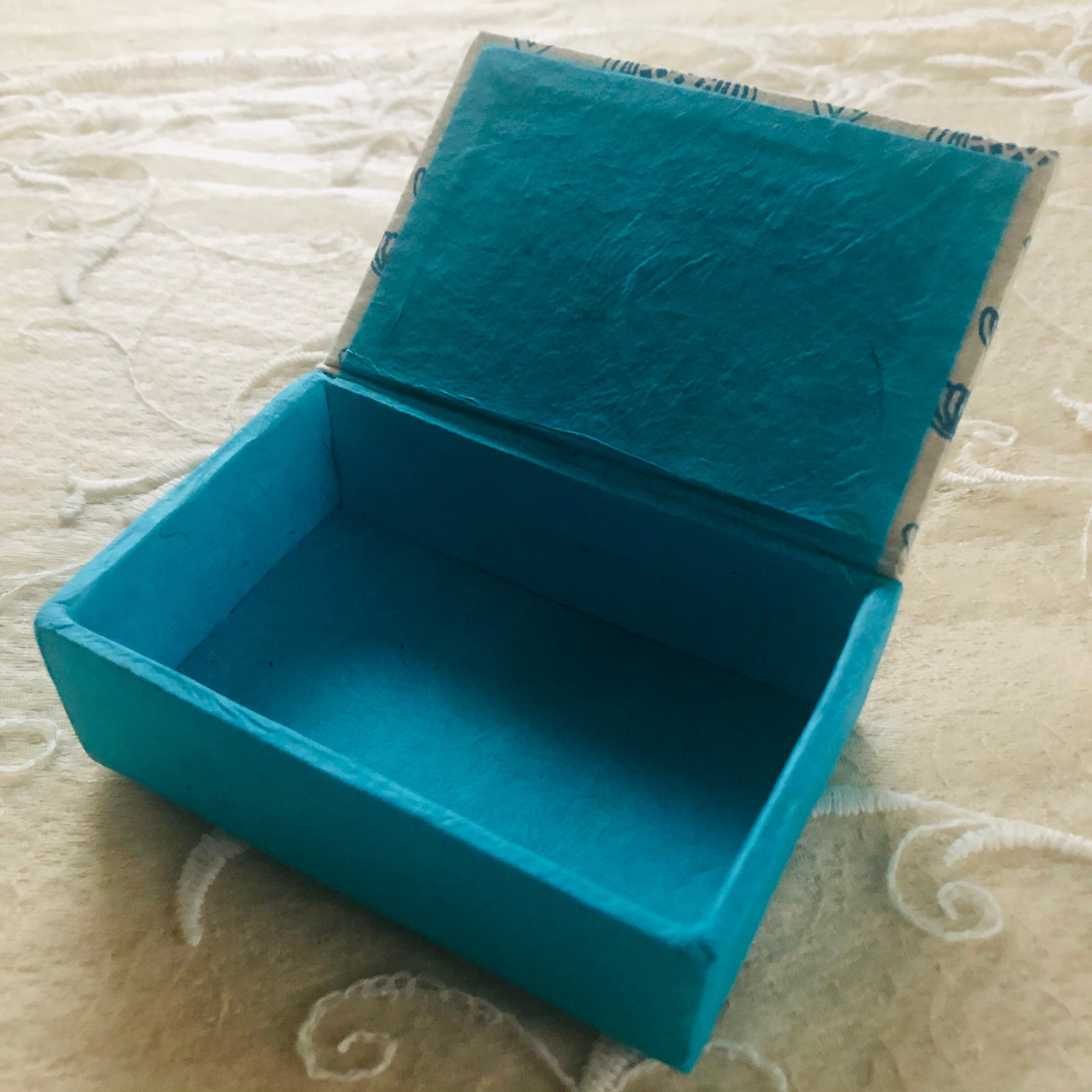 しっかりしたペーパークラフトで表面は和紙仕上げ。手触りや風合いもあたたかみがあります。特に蓋の部分はナチュラルで可愛いプリントが施されています。小物やアクセサリー入れに。プレゼントにも喜ばれます。ドライハーブのミニブーケを入れてサプライズにも。